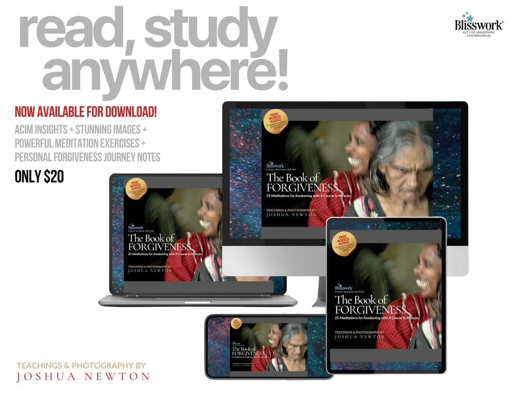 Where do you turn when forgiveness feels impossible? This unique 140-page coffee-table style visual wisdom ebook pairs 25 contemplative images with 25 meditations to offer you a lifetime journey through the hardest terrains of our mind.
