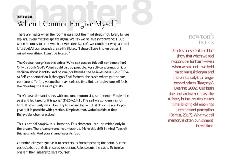 Drawing on A Course in Miracles, contemporary psychology, and gentle neuroscience, it invites you to a daily practice where wounds soften and release becomes possible.